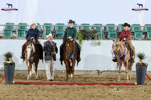 Schärpe und der Medaille auch die von der AQHA gesponserten Europameister