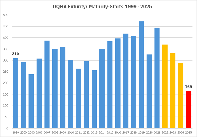 2019 waren es zur Q19 in Aachen noch 472 Starts in der DQHA Futurity,