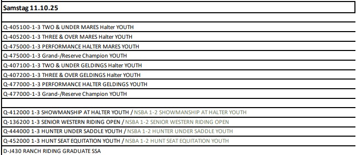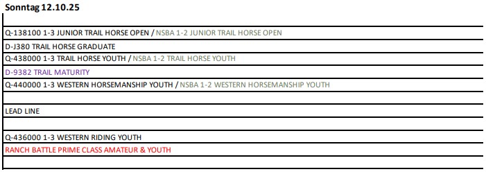 W. Horsemanship auf den Freitag vorgezogen. Davon betroffen sind