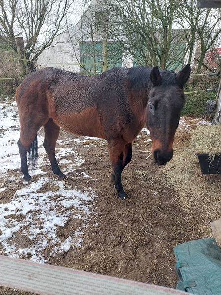 Wie Sie beigefügten Fotos entnehmen können, ist die Stute mit