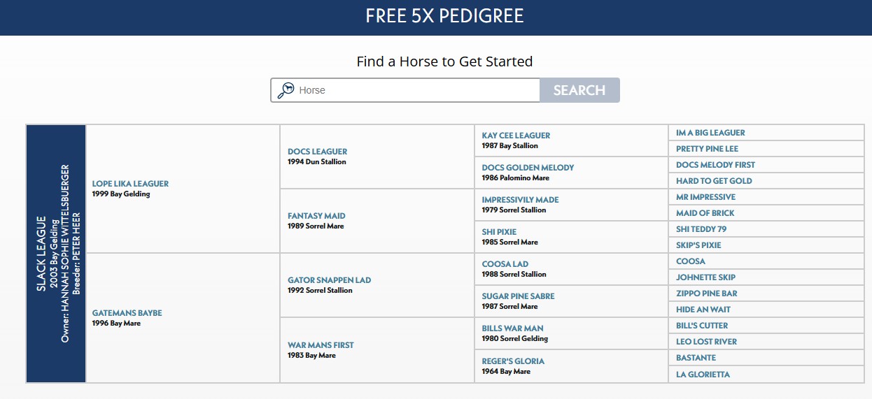 die Pedigrees aller bei der AQHA eingetragenen Pferde zugreifen.